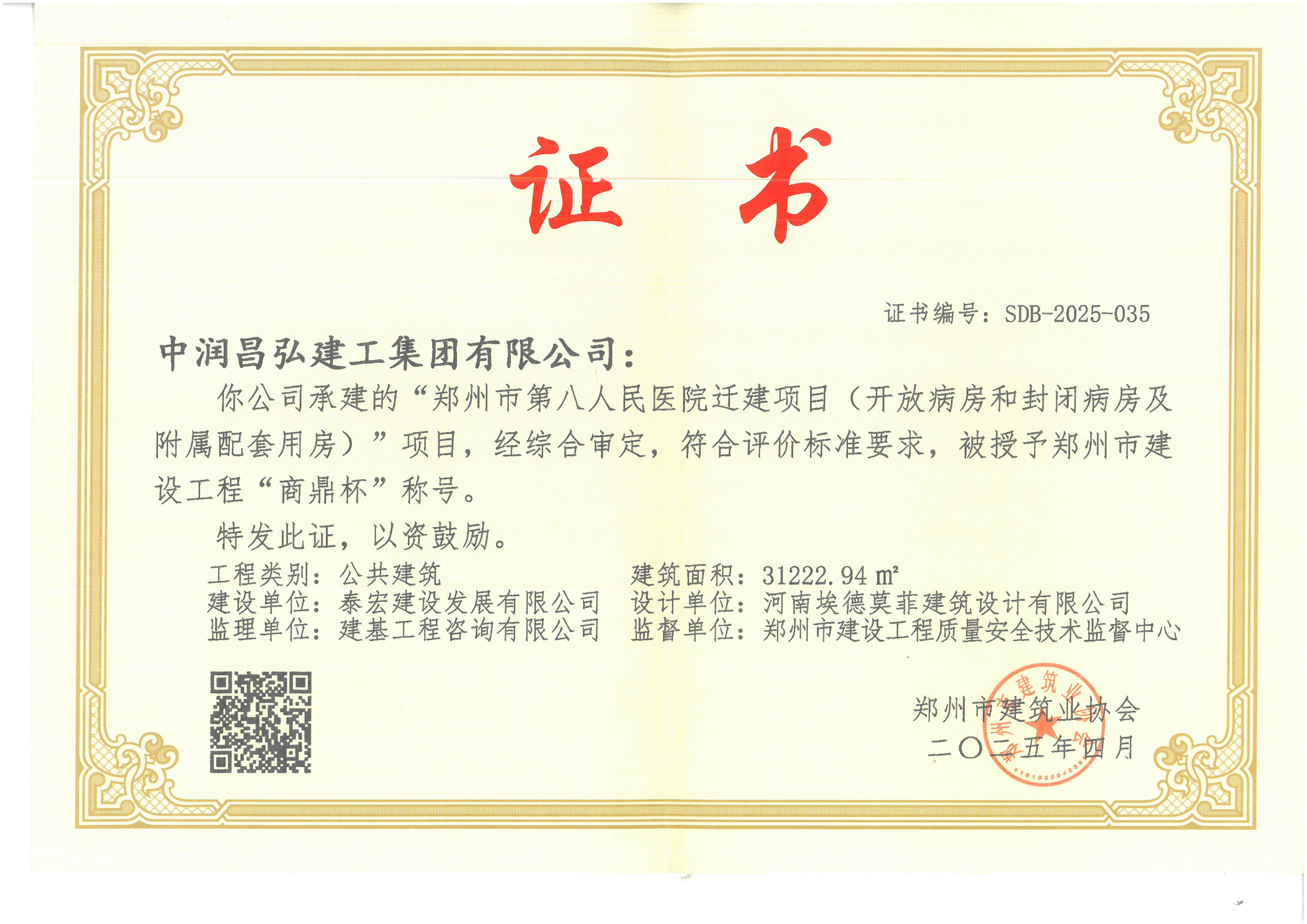 近日,星空手机在线登陆入口承建的省直青年人才公寓博学苑项目、金岱智慧产业园二期项目及代建的郑州市第八人民医院迁建项目被郑州市建筑业协会授予郑州市建设工程“商鼎杯”称号。